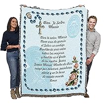 Amazon Com Hail Mary Prayer With Rosary Beads Blanket Spanish Ave Maria Religious Gift Tapestry Throw Woven From Cotton Made In The Usa 72x54 Home Kitchen