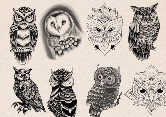 22 Owls Tattoo Designs Ebook Jpg Format Digital Book Bird Etsy